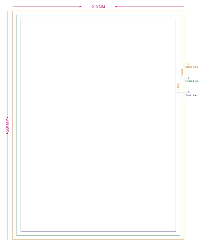 • Dimension shown on the design page includes bleed area (safety area), the final letter head size will be 210 mm x 280 mm
